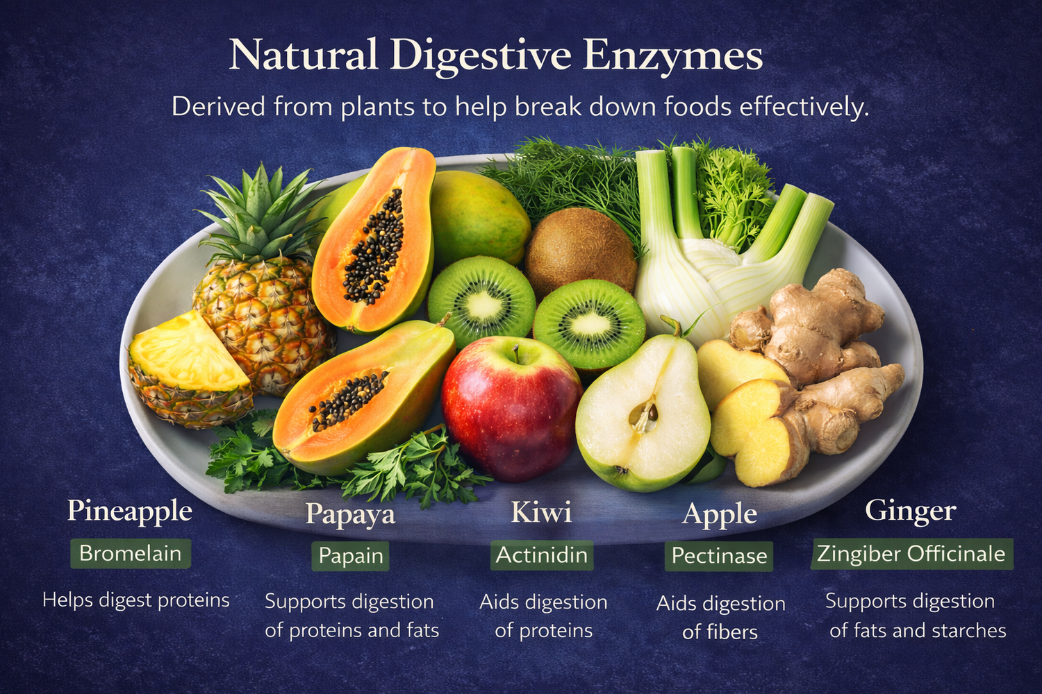 Digestive enzymes help your body break down the foods you eat so nutrients can be more easily absorbed. Supporting this natural process can help promote digestive comfort during and after meals as part of a daily wellness routine.